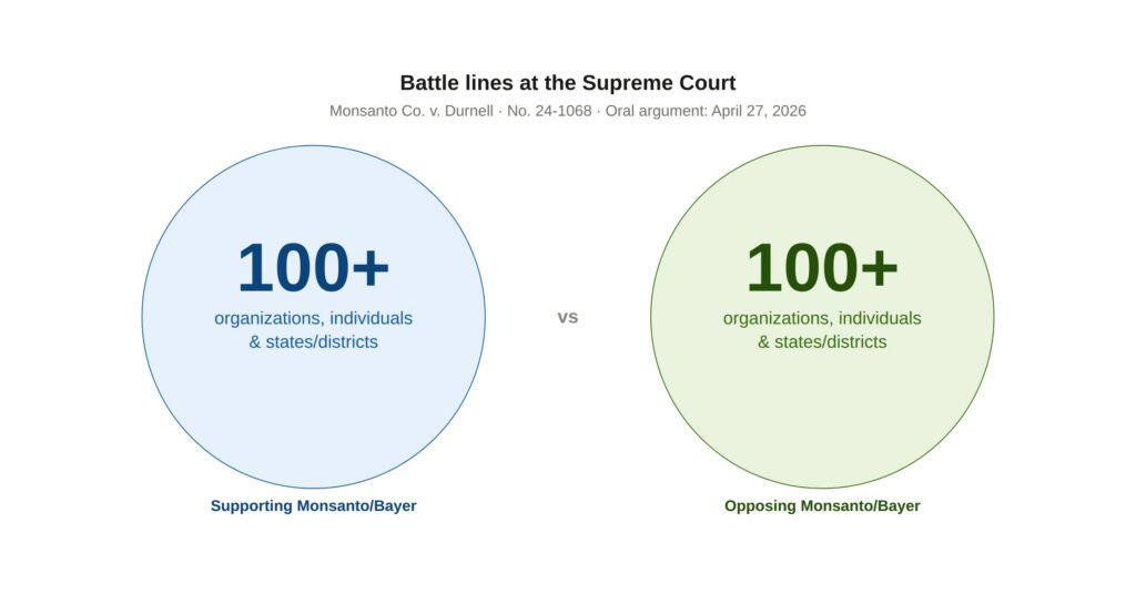 More than 100 individuals and organizations filed briefs opposing Monsanto’s position, arguing that federal law clearly leaves room for individual state labeling requirements, including product risk warnings.
