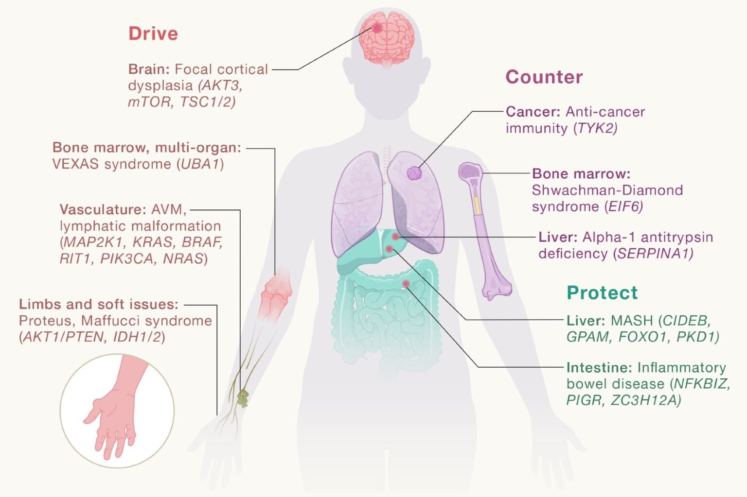 Somatic mutations can fight or protect against disease.