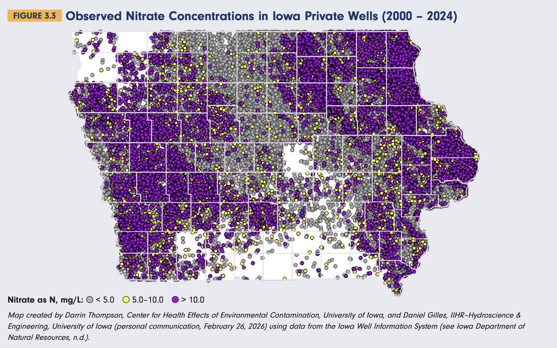 Adam Shriver, co-author of last month’s report from Iowa and director of health and nutrition policy at the Harkin Institute, said Iowa needs to do better tracking of fertilizer applications so residents and regulators can better understand where contamination may occur.